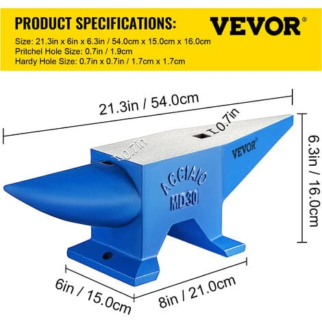 - Matériau de Haute Qualité 30 kg: Cette enclume en acier est fabriquée à partir d’un acier de haute qualité forgé au trempé, qui présente une dureté, une résistance et une durabilité élevées. Notre enclume en acier pour forgeron a un matériau d’excellente qualité de plus de 60 HRC. Sa base solide lui confère également une grande solidité.