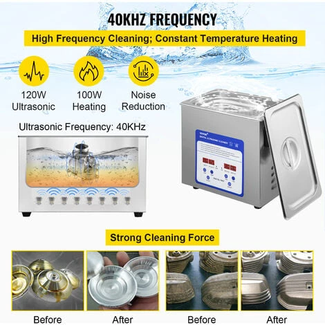 Avec une frequence ultrasonore de 40 kHz et des transducteurs puissants, notre nettoyeur a ultrasons nettoie bien les objets aux formes complexes, aux trous ou aux taches de longue duree.